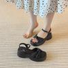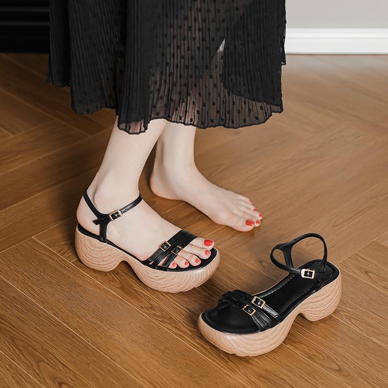 Thin strap thick-soled muffin heel set toe sandals for women's summer new models with light and not tired feet retro Roman shoes for women — купить товар онлайн с бесплатной доставкой по всему миру!