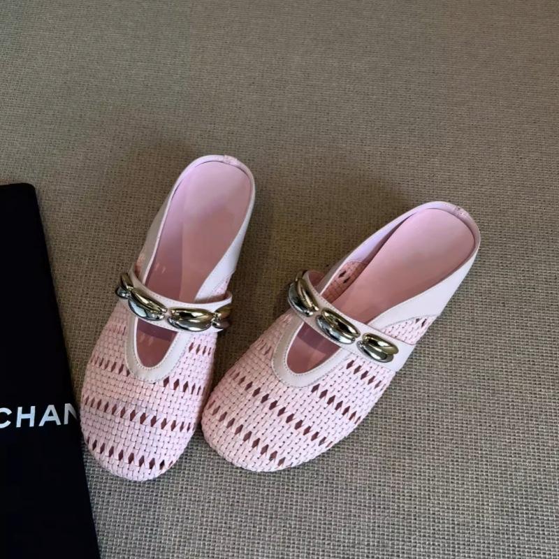 Flat-bottomed bag head slippers women's word belt summer new light luxury retro woven hollow half slippers outside sandals women