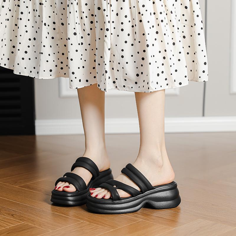 Fairy wind Internet celebrity thread muffin heel sandals female 2025 summer new casual wear soft sole outdoor beach shoes