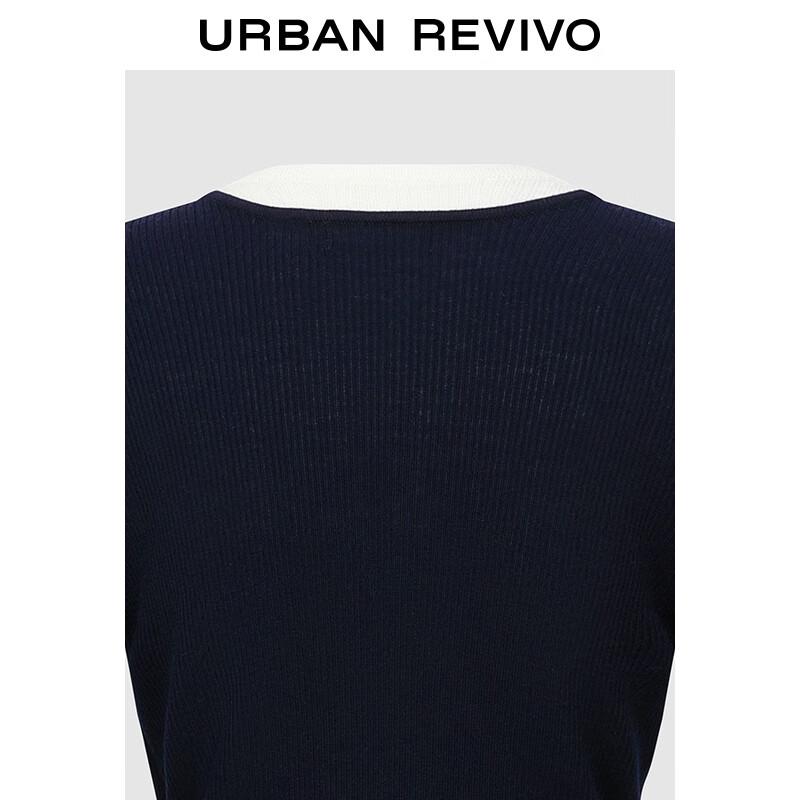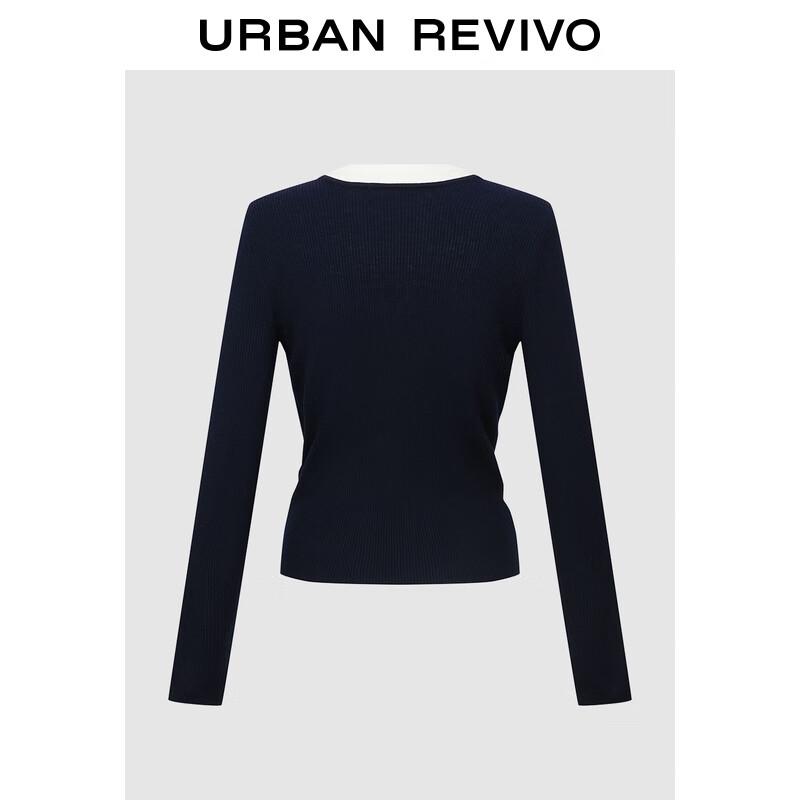 UR 2025 Autumn Women's Color-Block Twist Knit Top