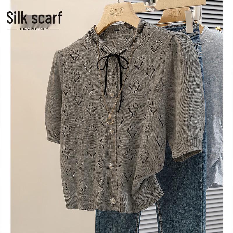 Женский топ с коротким рукавом, ажурной вязки