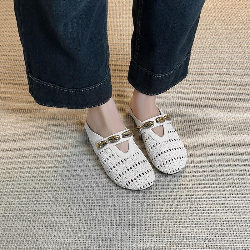 Relaxation summer flat-bottomed cool slippers women's bag head retro woven hollow light luxury style one pedal outside wearing sandals women — купить товар онлайн с бесплатной доставкой по всему миру!