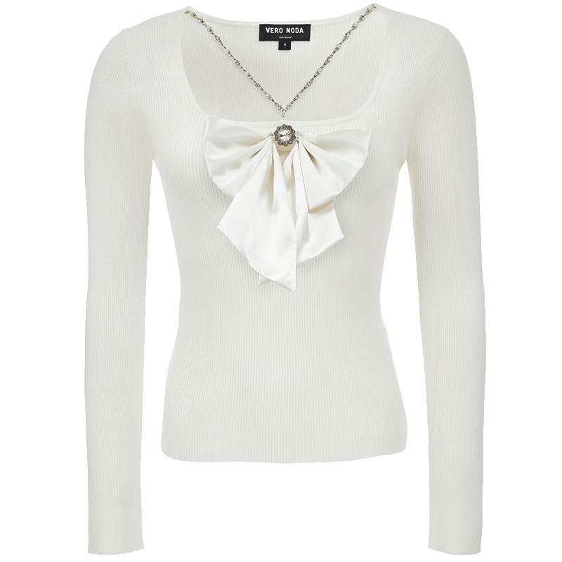 VEROMODA 2025 Spring Detachable Chain Bow Shimmer Knit Sweater