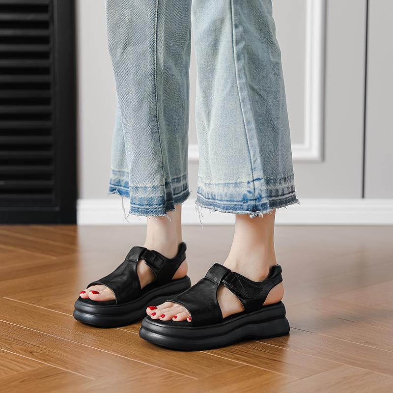 Британские ретро летние новые сандалии женские толстая подошва увеличивают рост, с открытым носком плоская подошва легкие, удобные в носке, не устают, сандалии женские