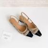 Sheepskin version~ French retro style square head color matching hollow woven sandals women's summer new rear strap bag head shoes