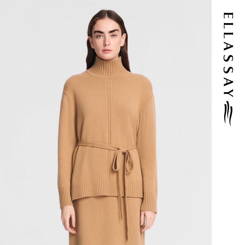 ELLASSAY Women's Stand-Up Collar Tie-Front Knit Sweater