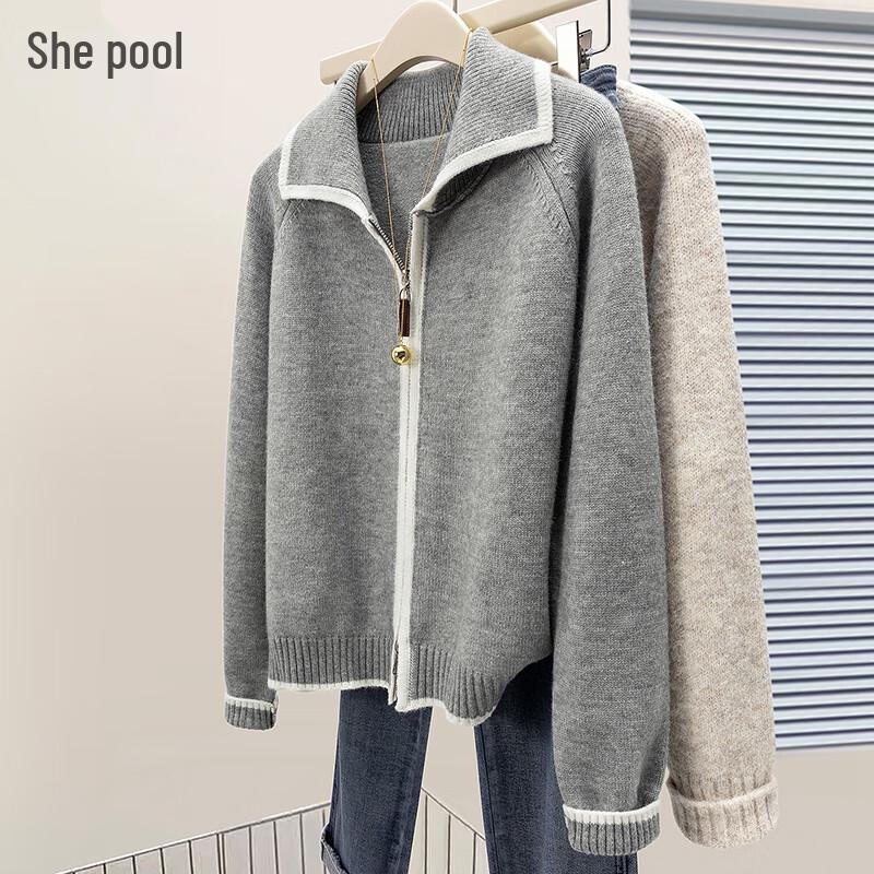 Женский вязаный кардиган HerPool с цветными блоками и двойной молнией