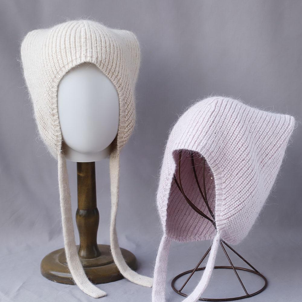 Милая защита ушей и теплая шапка из кроличьего пуха с кошачьими ушками, модная женская шапка на осень и зиму