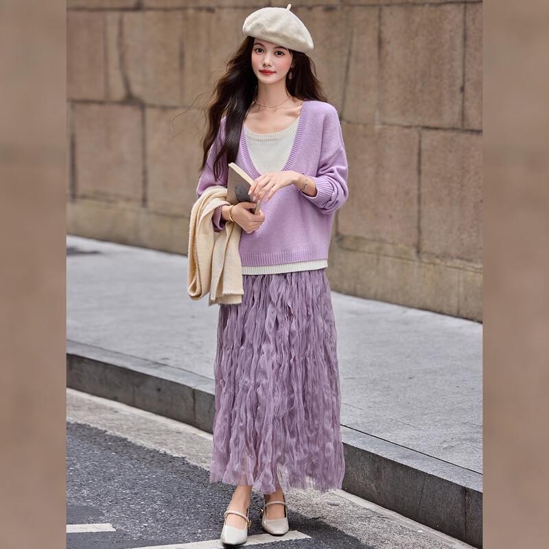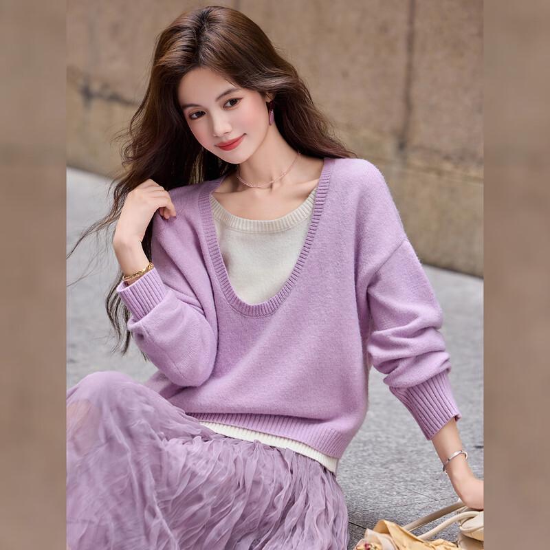 Bailuyu Women's Contrast Faux Two-Piece Knit Sweater