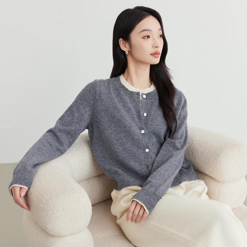 Elva' Island Women's Round Neck Short Knit Cardigan
