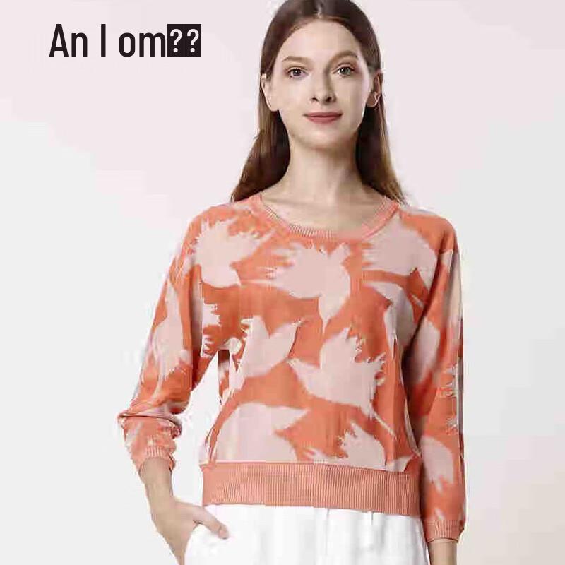Топ с длинным рукавом из набивного тутового шелка Anlom