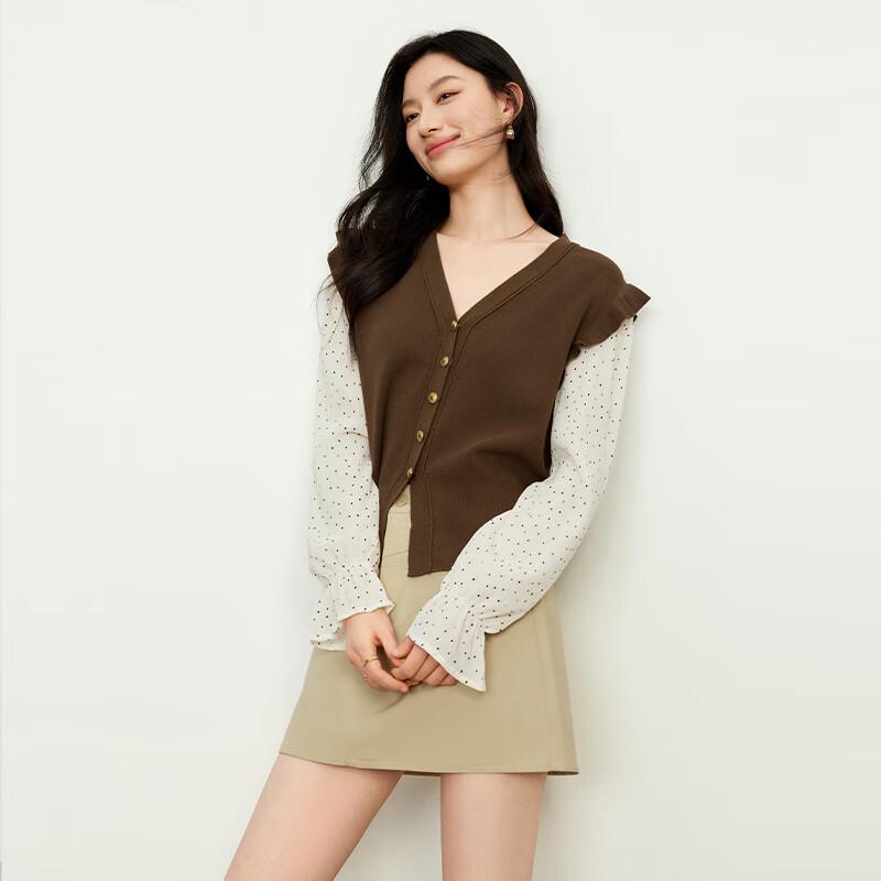 JOY SPEAKER Women's Faux Two-Piece Long Sleeve Shirt