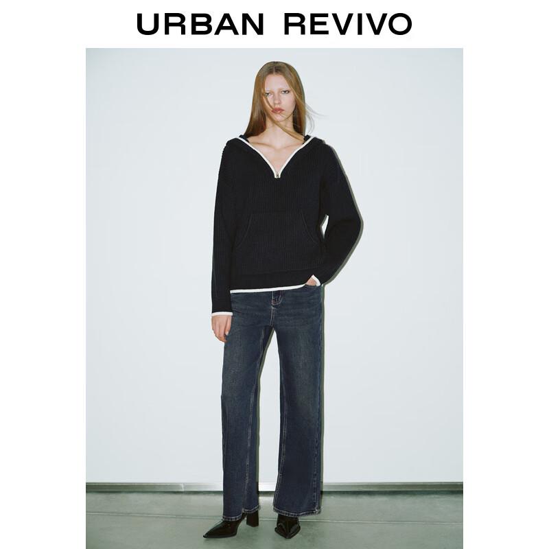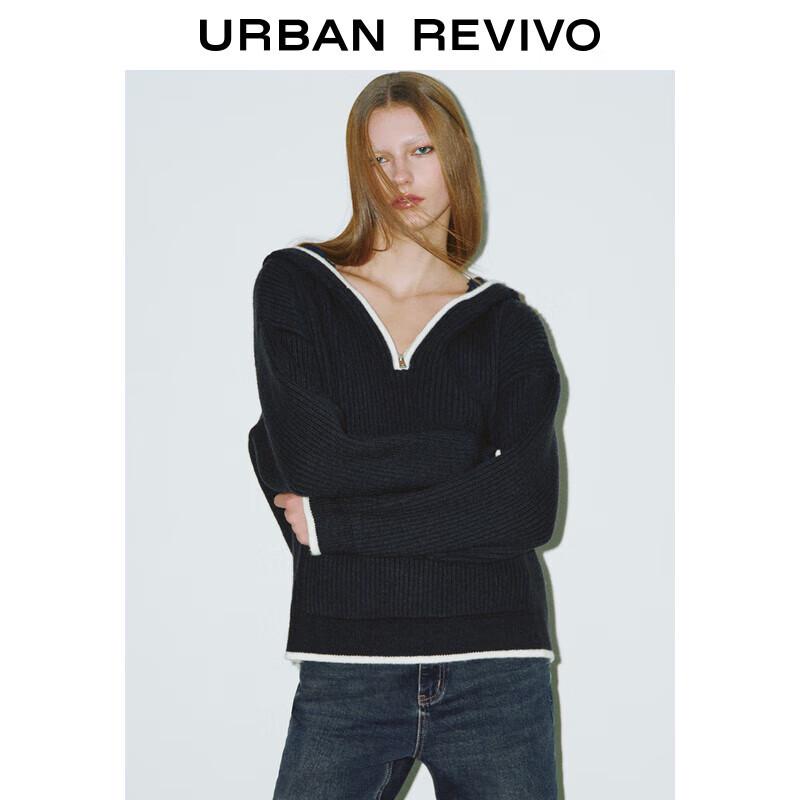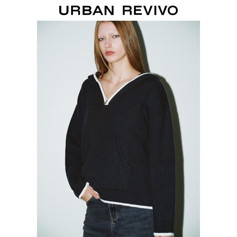 Женский вязаный кардиган с капюшоном на молнии в стиле колор-блок