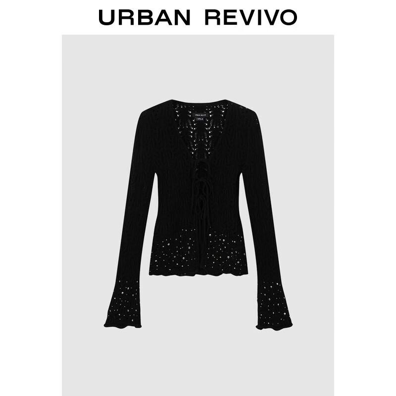 Кардиган UR 2025 Весна с бисерными завязками и вязаным узором