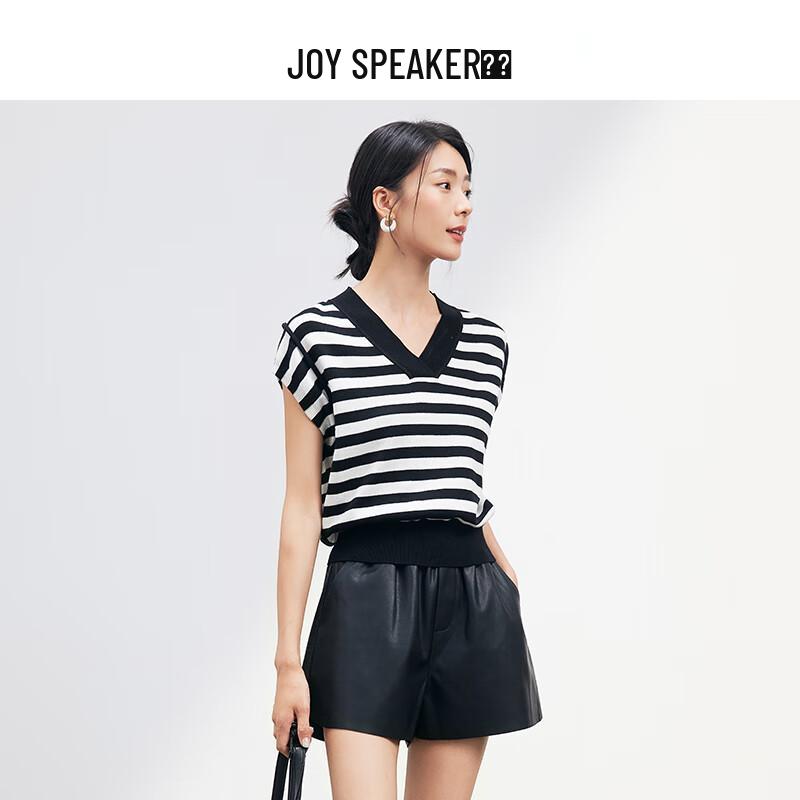 JOY SPEAKER Женский трикотажный топ с V-образным вырезом, в полоску, с коротким рукавом