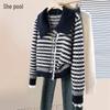 Женский кардиган из смесовой шерсти с V-образным вырезом, в полоску, с пайетками