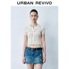 Женский вязаный кардиган с коротким рукавом и ажурным цветочным узором