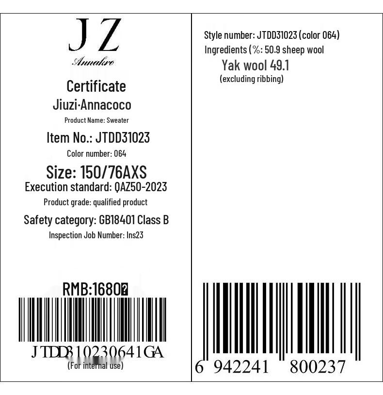 Jiuzi·Annacore Women's Yak Wool Blend Half-Turtleneck Sweater