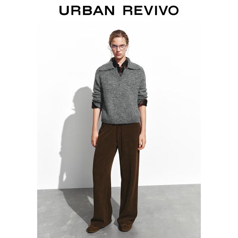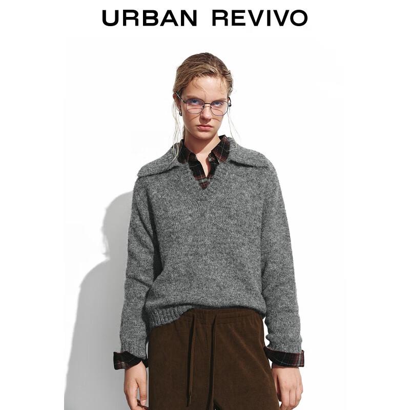 Женский простой серый короткий свитер крупной вязки свободного кроя UR 2025