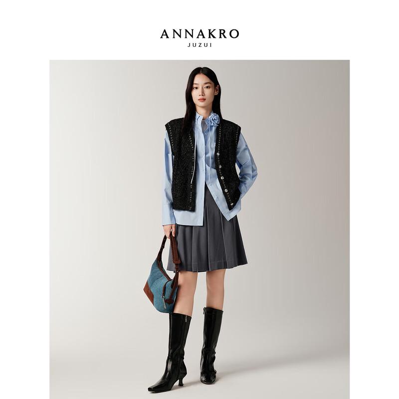 Jiuzi Anna Kuao Женский элегантный жилет с V-образным вырезом и пайетками из смесовой шерсти