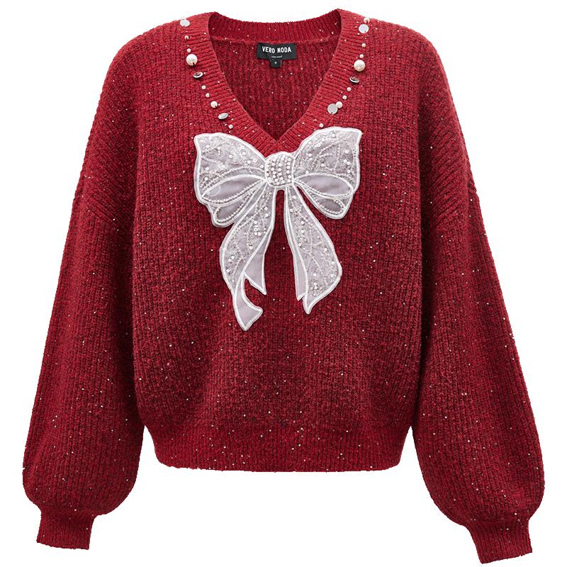 VEROMODA Женский вязаный свитер свободного кроя с V-образным вырезом, из смесовой шерсти, с бантом и пайетками — купить товар онлайн с бесплатной доставкой по всему миру!