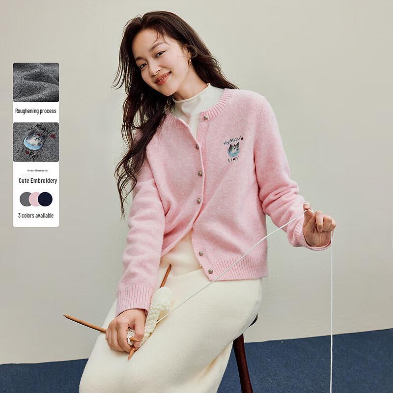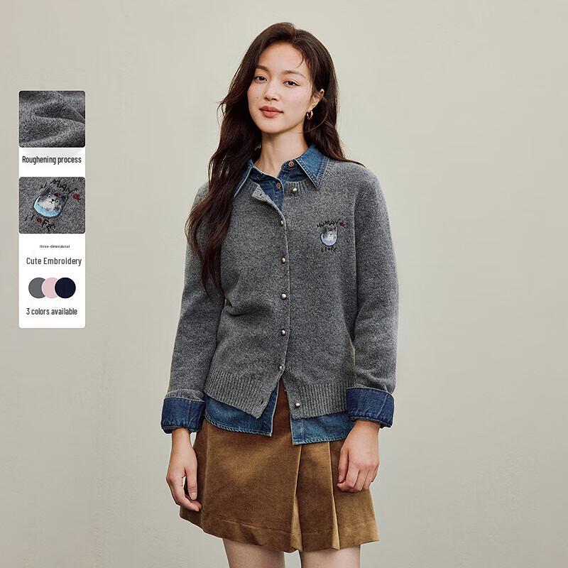 Yinman Women's Embroidered Brushed Knit Sweater Cardigan
