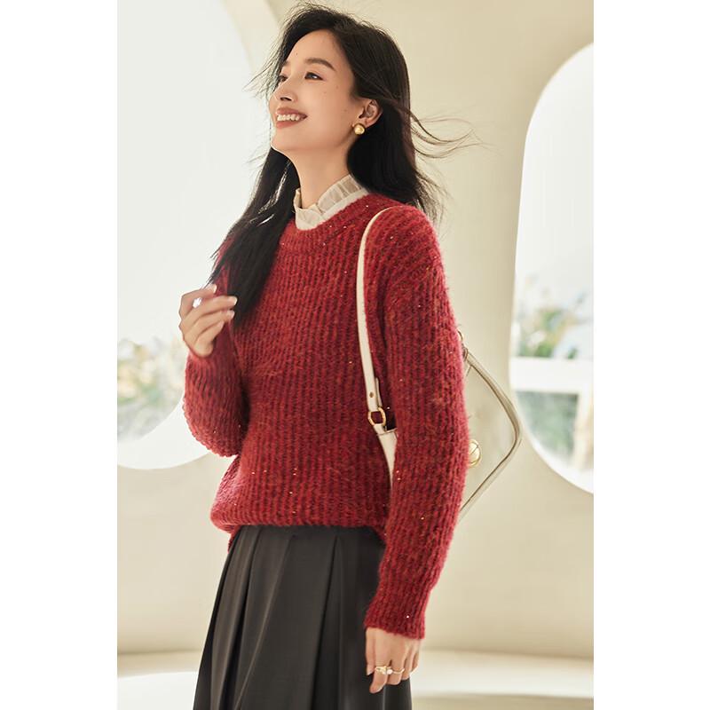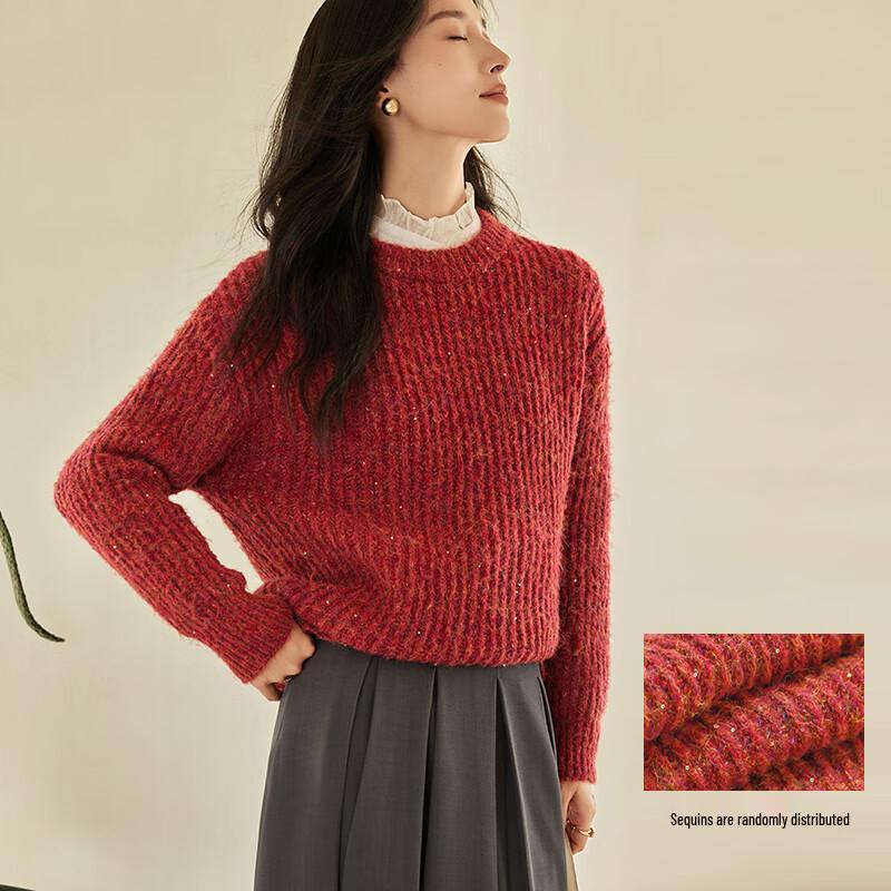 VICTORIA&VERA Women's Ribbed Sequin Knit Sweater