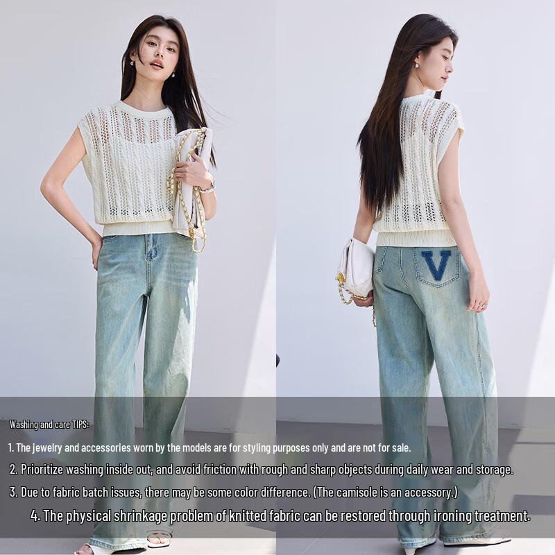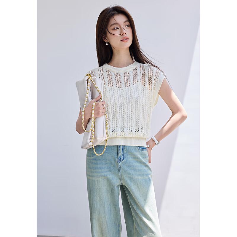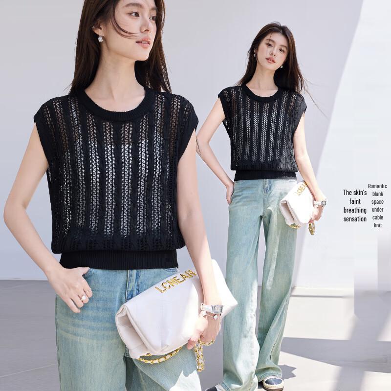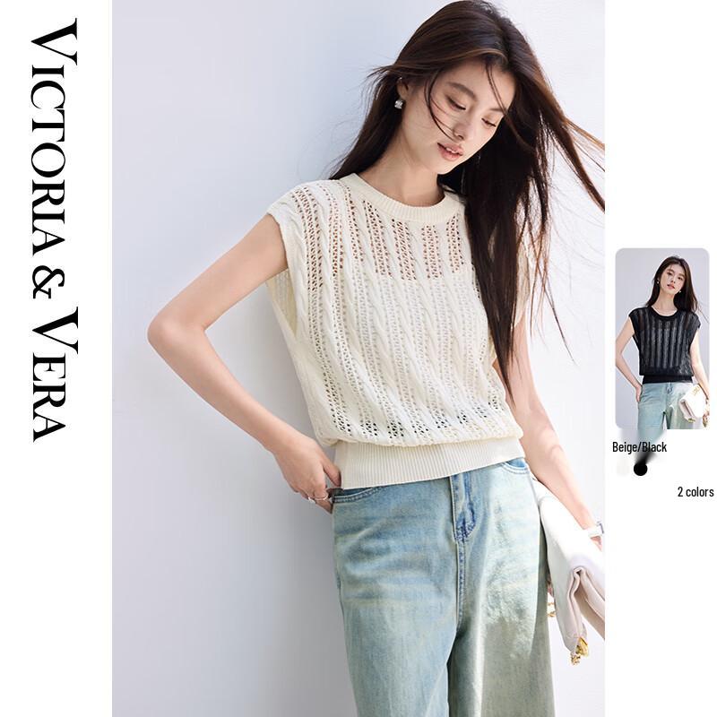 VICTORIA&VERA Женский ажурный трикотажный жилет без рукавов с круглым вырезом