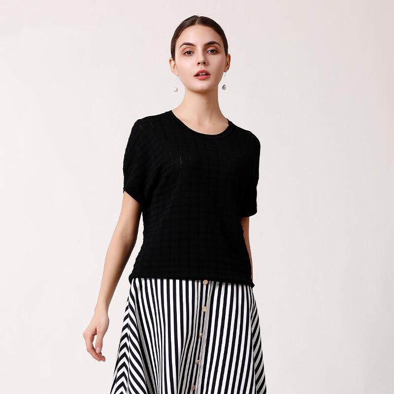 Anlom Women's Short Sleeve Round Neck Knit Top