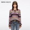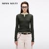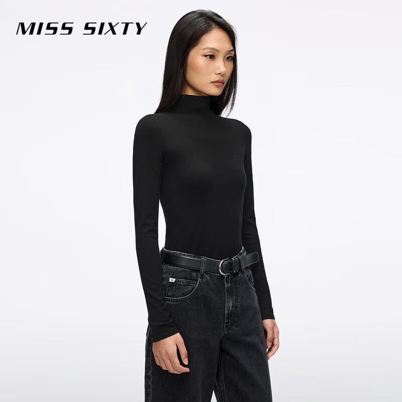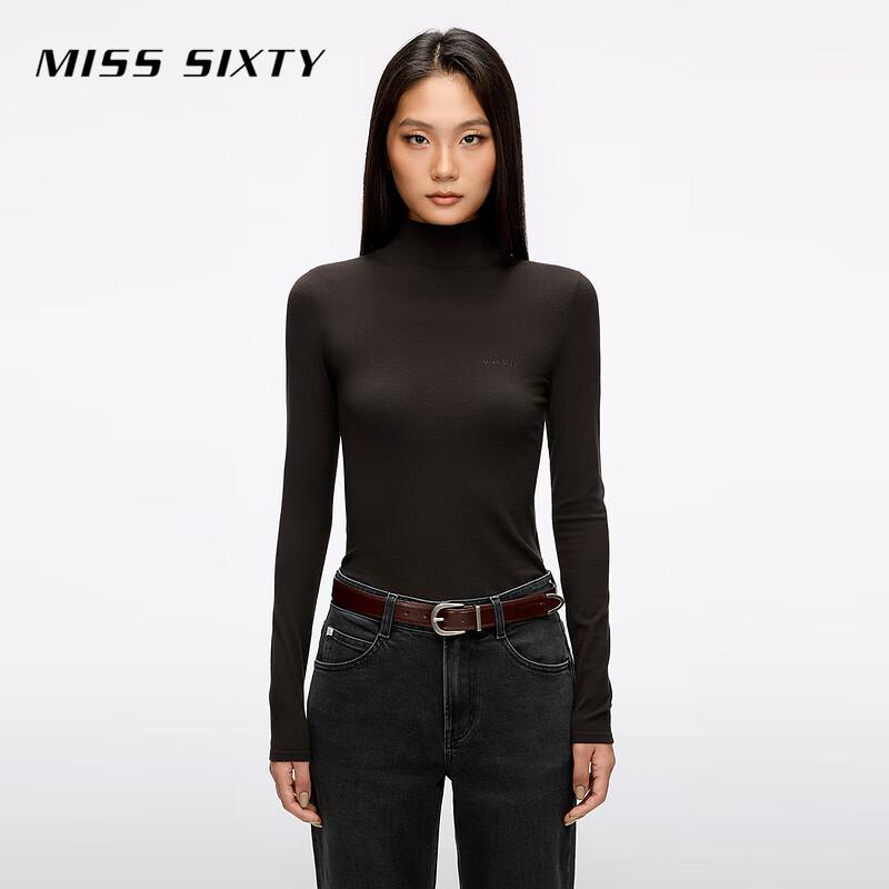 Miss Sixty Женский вязаный топ с высоким воротником, облегающий, с длинным рукавом и вышивкой, Осень 2025