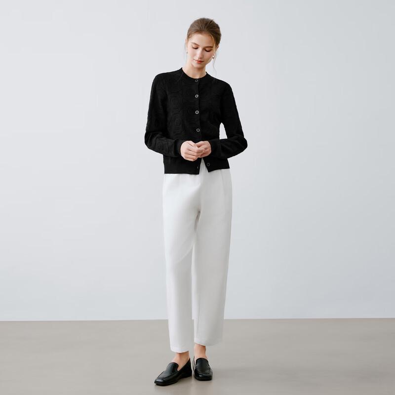 Elva' Island Women's Round Neck Long Sleeve Knit Cardigan