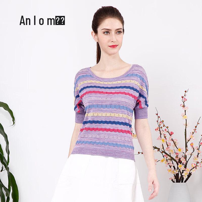 Женский полосатый трикотажный топ с рукавами пять четвертей Anlom