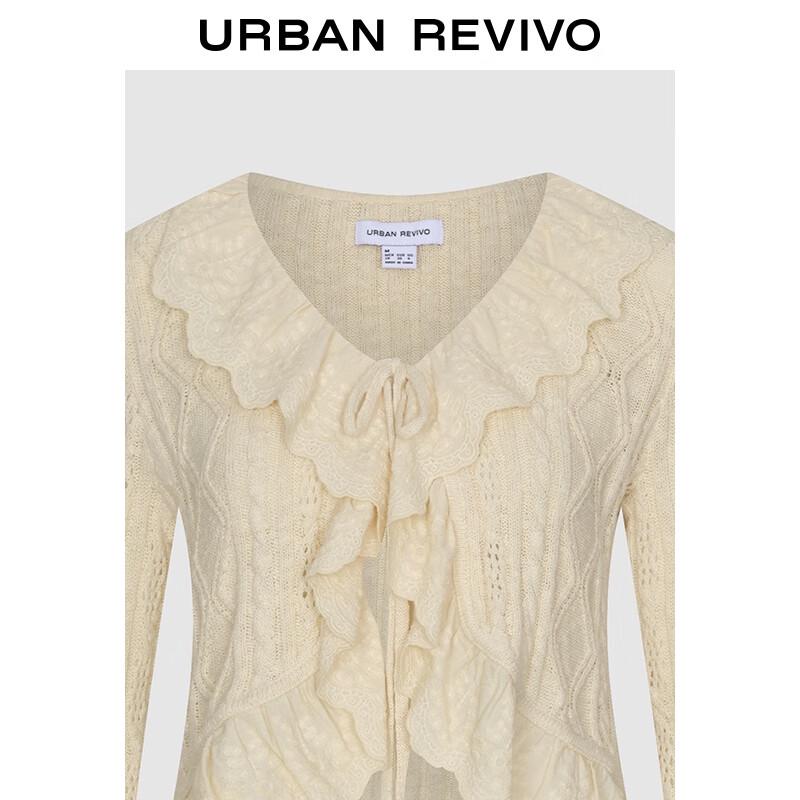 UR 2025 Autumn Women's Casual Ruffle Tie-Knit Cardigan