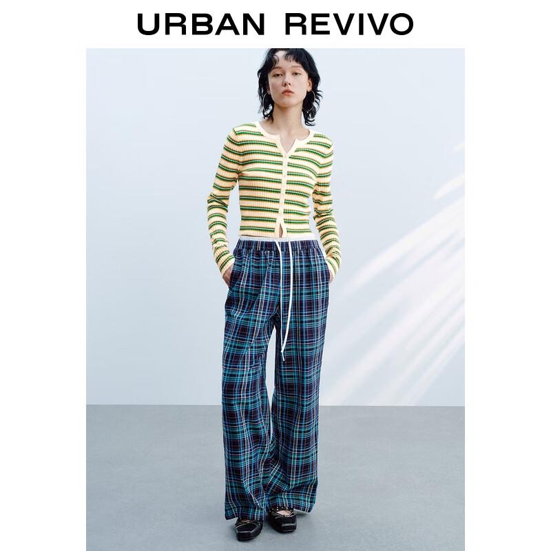 UR 2025 Autumn Women's Color-block Textured Ultra-short Knit Cardigan