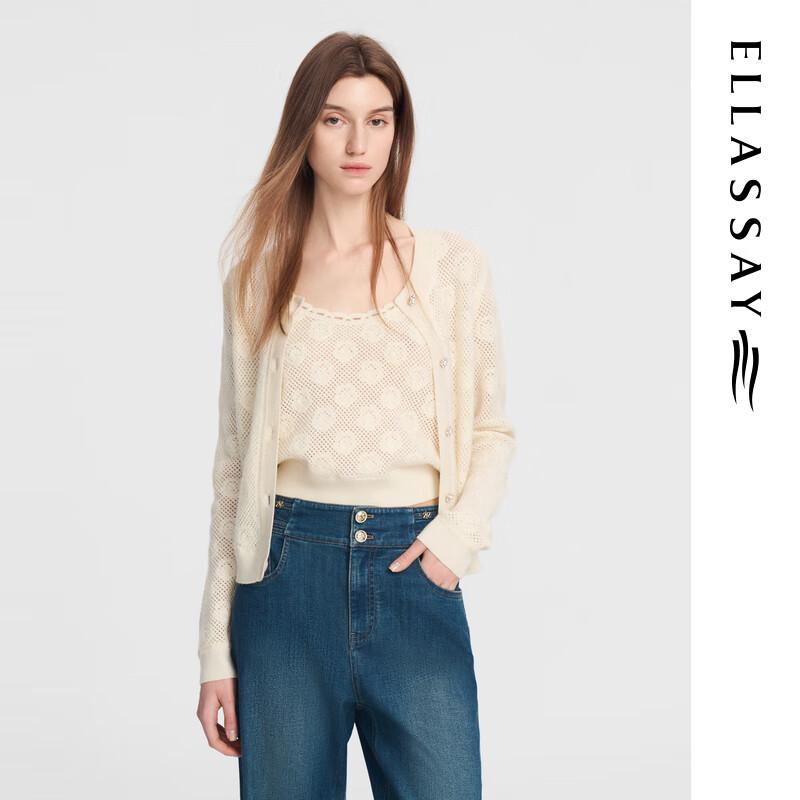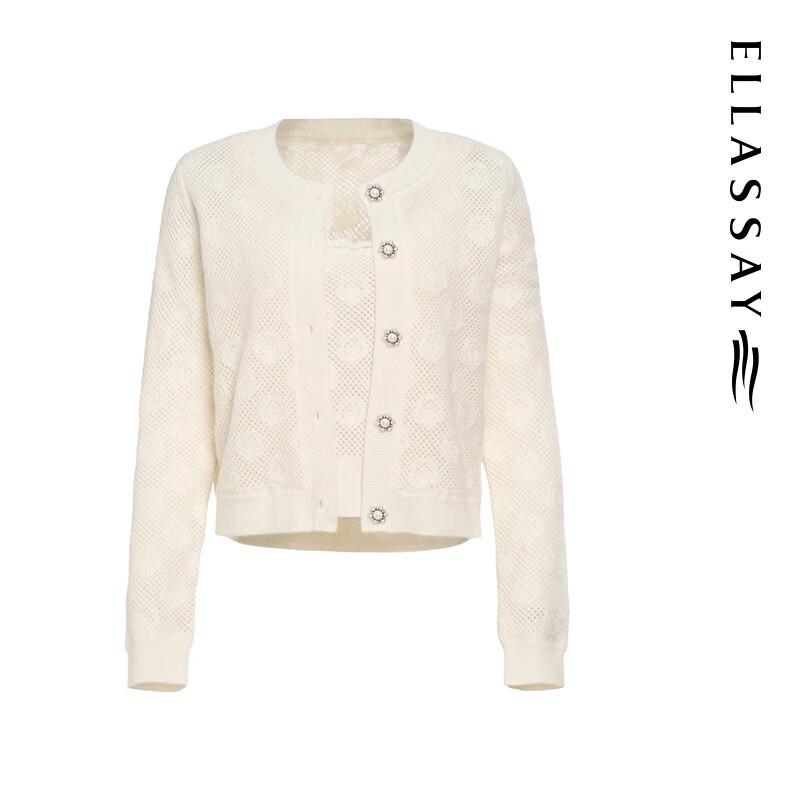 ELLASSAY Женский трикотажный комплект из двух частей из жаккардовой овечьей шерсти с ажурной вязкой для ранней осени