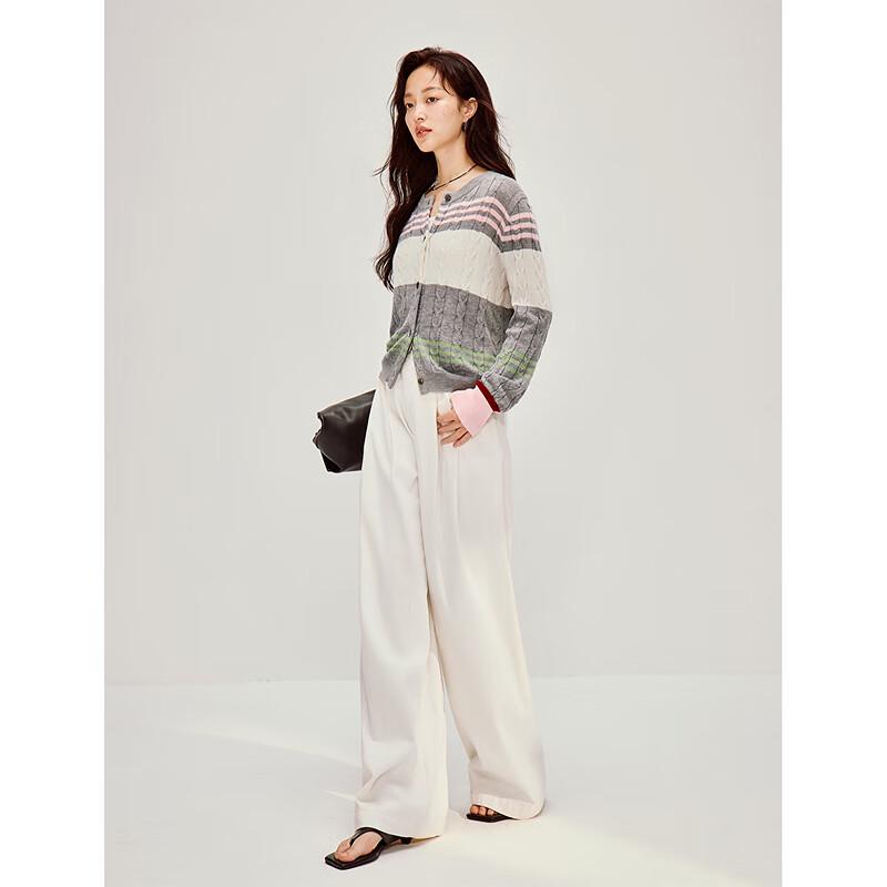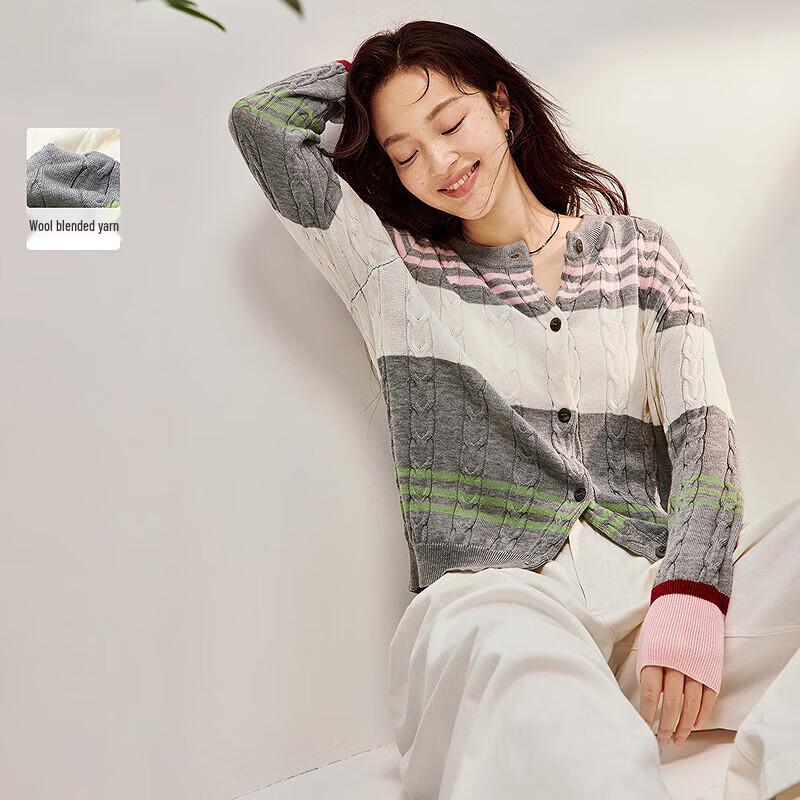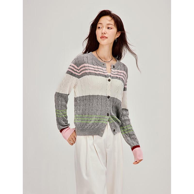 Женский кардиган INMAN в стиле ретро, полосатый, с цветными блоками, с кабельной вязкой