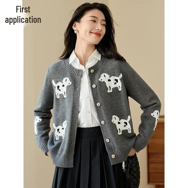 Женский толстый вязаный кардиган с круглым вырезом и узором щенков — купить товар онлайн с бесплатной доставкой по всему миру!