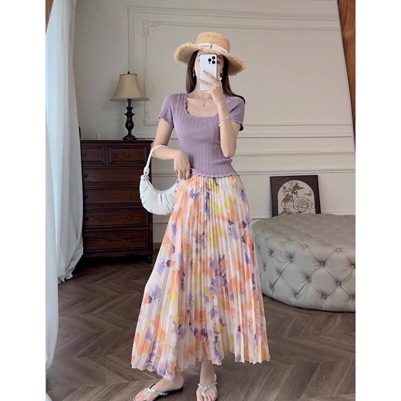 JK&JS Women's Square Collar Slim Fit Short Sleeve Knit Top