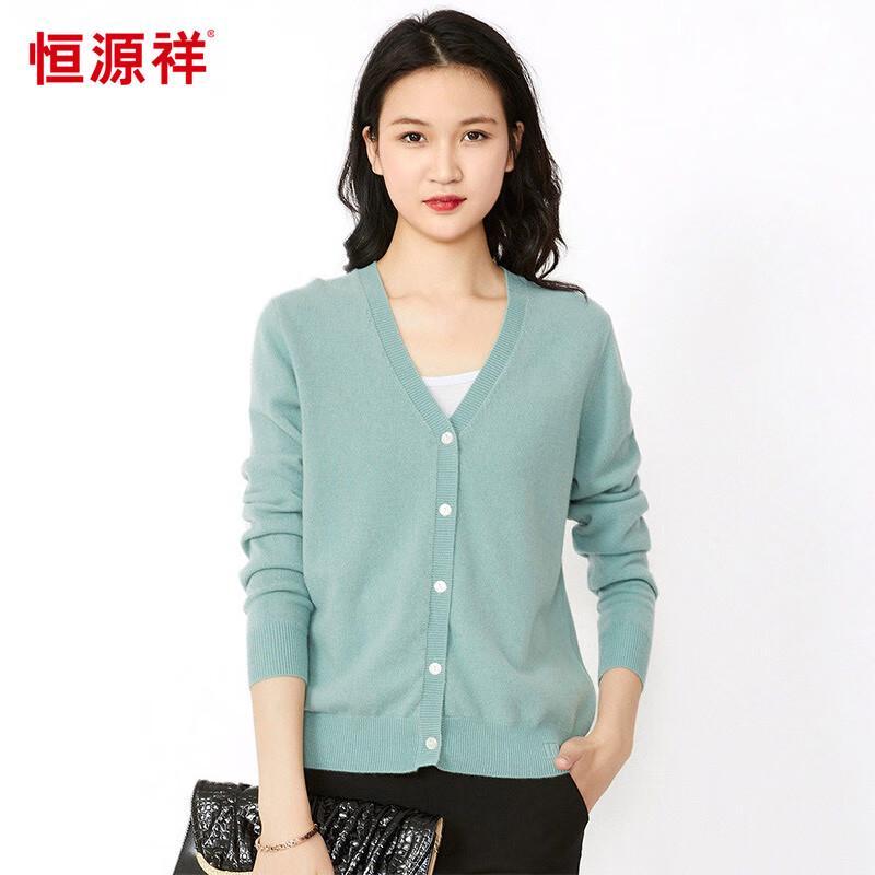 Hengyuanxiang Women's 100% Wool V-Neck Cardigan