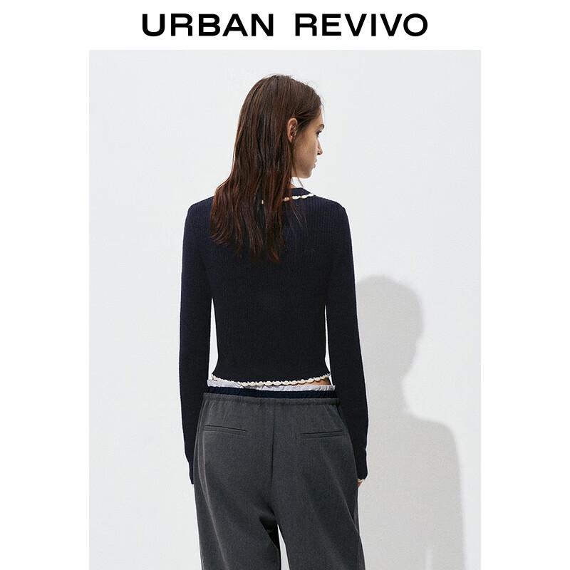 UR Women's Casual Contrast Trim Cropped Knit Top