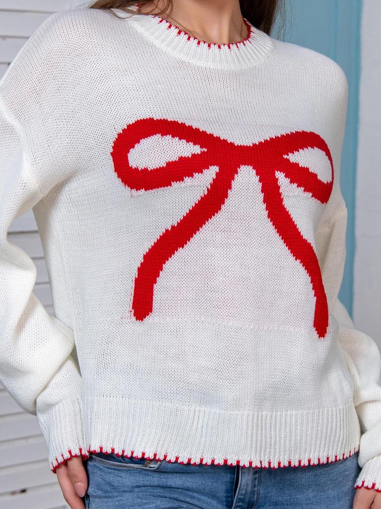 Женский вязаный пуловер с длинным рукавом и бантом - европейский и американский стиль