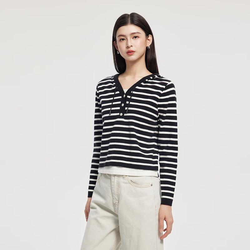 FivePlus Women's Striped Hooded Knit Cardigan