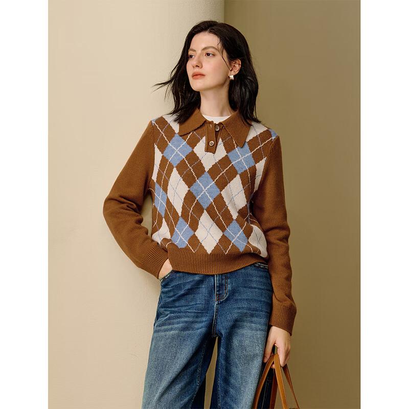 Женский пуловер INMAN в стиле ретро с ромбовидным узором