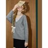 Триколор 2025 Осень Трикотажный топ с V-образным вырезом и имитацией двух частей