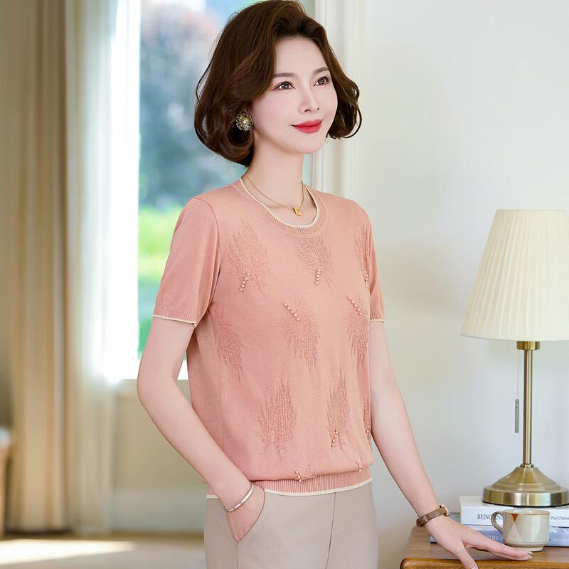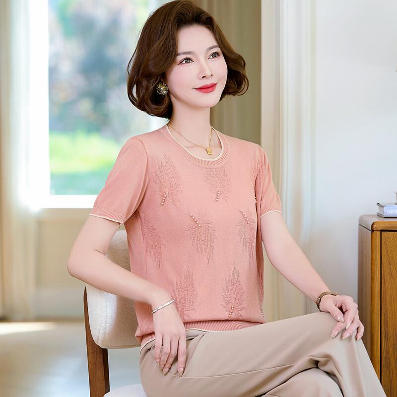 Wo Xue Petite Мамина футболка с коротким рукавом из ледяного шелка
