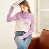 TUHUANG Женский свитер из чистой шерсти с жаккардовым узором в стиле колорблок и полувысоким воротником