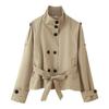 Европейское и американское женское двубортное повседневное тренч-пальто с поясом, короткая куртка