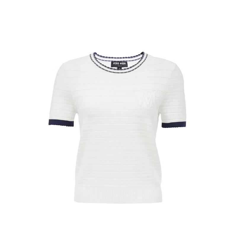Veromoda Топ из трикотажа жаккардовой вязки с коротким рукавом и контрастным воротником