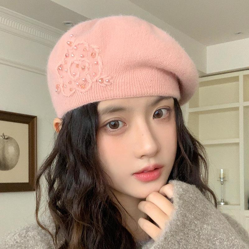 Кроличий пух Жемчужный вязаный берет Женская осенне-зимняя шляпа художника Теплая шерстяная шапка Зимние шапки для женщин, Шапки-бини для женщин, Зимние шляпы для женщин — купить товар онлайн с бесплатной доставкой по всему миру!