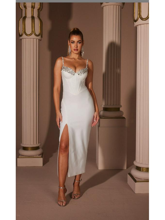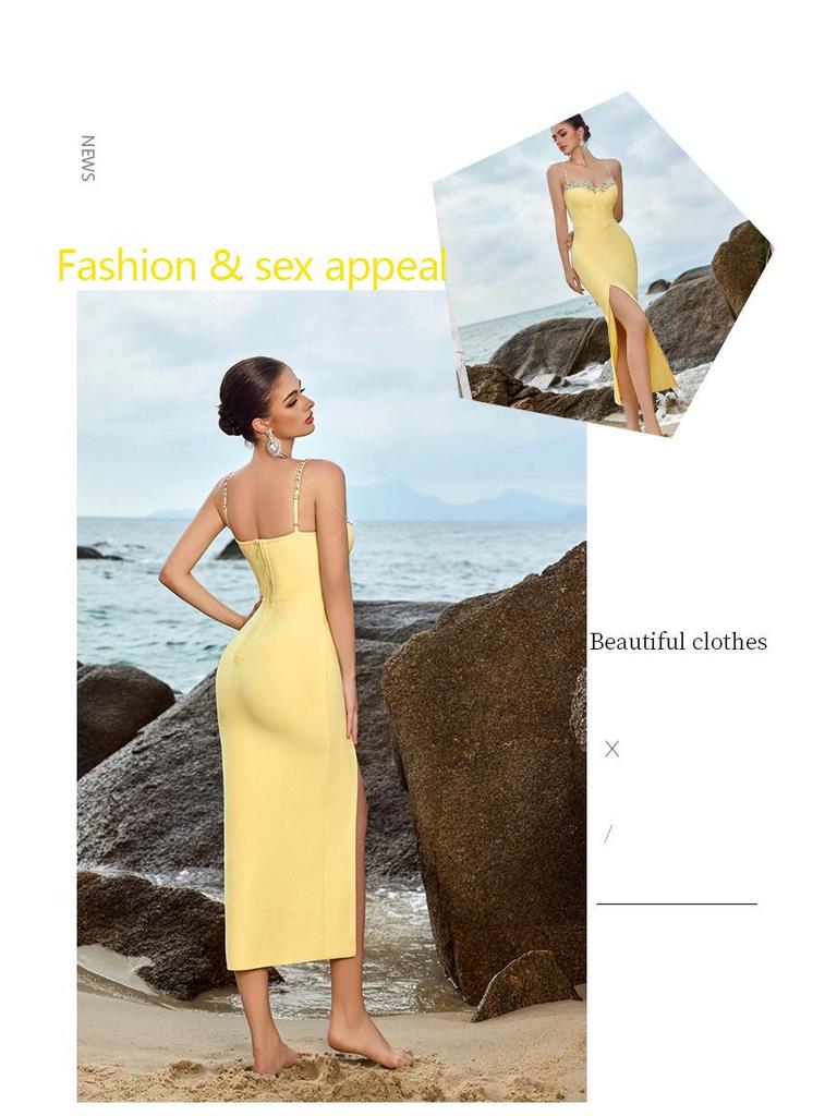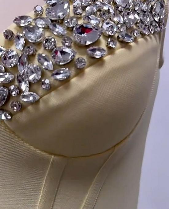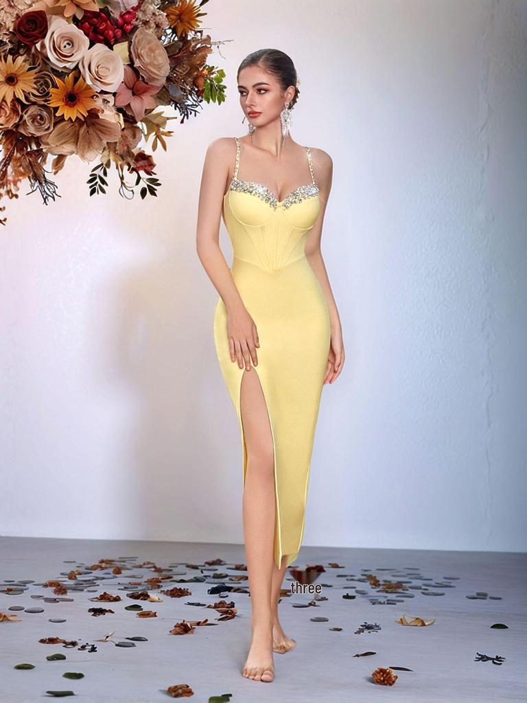 Европейско-американское вечернее платье с бандажом из страз и боковым разрезом